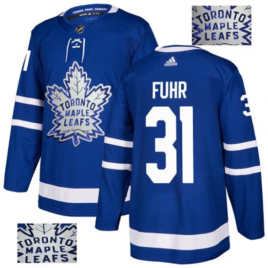 Men's Adidas Toronto Maple Leafs #31 Grant Fuhr Authentic Royal Blue Fashion Gold NHL Jersey