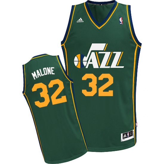 Home>NBA>Utah Jazz>Karl Malone>Men's Adidas Utah Jazz #32 Karl Malone Swingman Green Alternate NBA Jersey