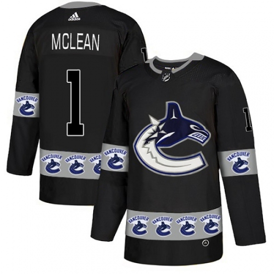 Men's Adidas Vancouver Canucks #1 Kirk Mclean Authentic Black Team Logo Fashion NHL Jersey