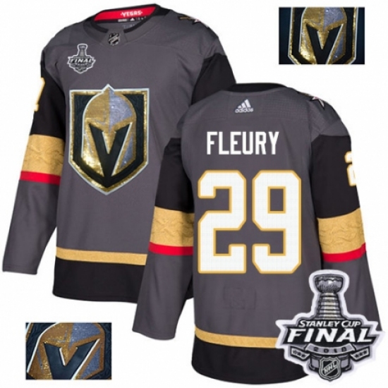 Men's Adidas Vegas Golden Knights #29 Marc-Andre Fleury Authentic Gray Fashion Gold 2018 Stanley Cup Final NHL Jersey