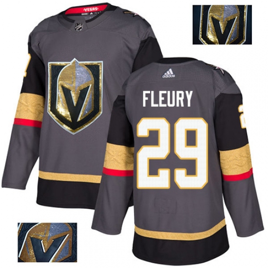 Men's Adidas Vegas Golden Knights #29 Marc-Andre Fleury Authentic Gray Fashion Gold NHL Jersey