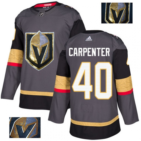 >Men's Adidas Vegas Golden Knights #40 Ryan Carpenter Authentic Gray Fashion Gold NHL Jersey