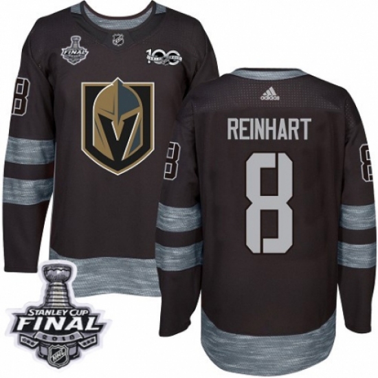 Men's Adidas Vegas Golden Knights #8 Griffin Reinhart Authentic Black 1917-2017 100th Anniversary 2018 Stanley Cup Final NHL Jersey