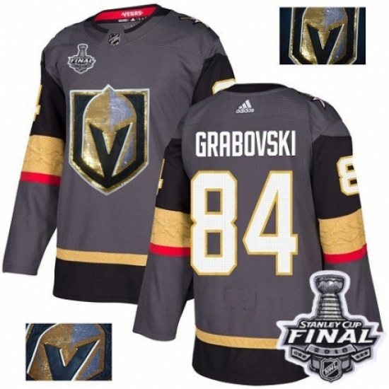 >Men's Adidas Vegas Golden Knights #84 Mikhail Grabovski Authentic Gray Fashion Gold 2018 Stanley Cup Final NHL Jersey