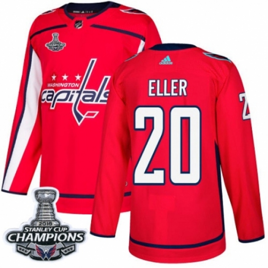 Men's Adidas Washington Capitals #20 Lars Eller Premier Red Home 2018 Stanley Cup Final Champions NHL Jersey