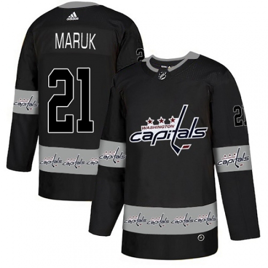Men's Adidas Washington Capitals #21 Dennis Maruk Authentic Black Team Logo Fashion NHL Jersey