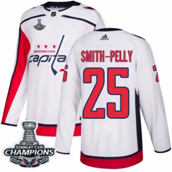 Men's Adidas Washington Capitals #25 Devante Smith-Pelly Authentic White Away 2018 Stanley Cup Final Champions NHL Jersey