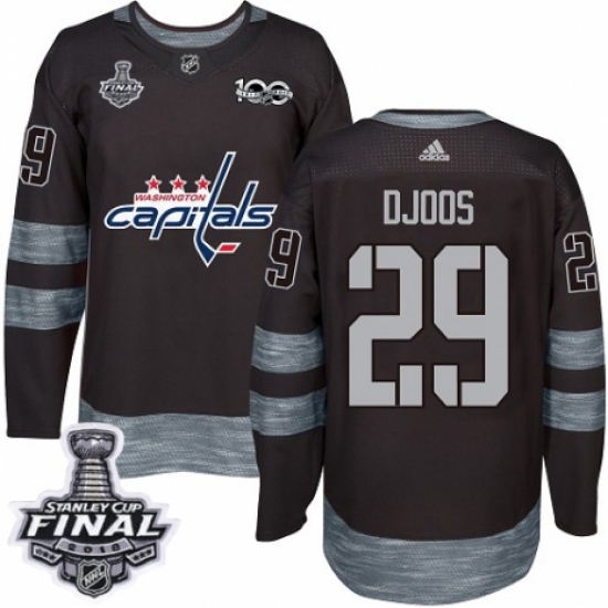 Men's Adidas Washington Capitals #29 Christian Djoos Authentic Black 1917-2017 100th Anniversary 2018 Stanley Cup Final NHL Jersey