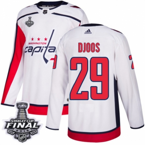 Men's Adidas Washington Capitals #29 Christian Djoos Authentic White Away 2018 Stanley Cup Final NHL Jersey
