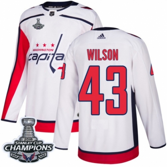 Men's Adidas Washington Capitals #43 Tom Wilson Authentic White Away 2018 Stanley Cup Final Champions NHL Jersey