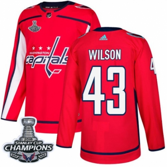 Men's Adidas Washington Capitals #43 Tom Wilson Authentic Red Home 2018 Stanley Cup Final NHL Jersey