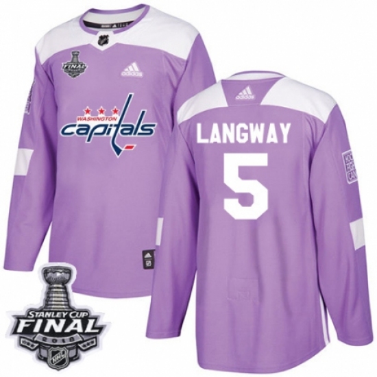 >Men's Adidas Washington Capitals #5 Rod Langway Authentic Purple Fights Cancer Practice 2018 Stanley Cup Final NHL Jersey