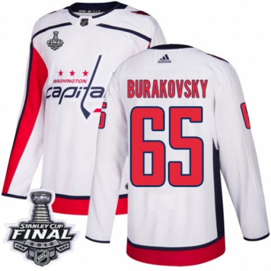 Men's Adidas Washington Capitals #65 Andre Burakovsky Authentic White Away 2018 Stanley Cup Final NHL Jersey