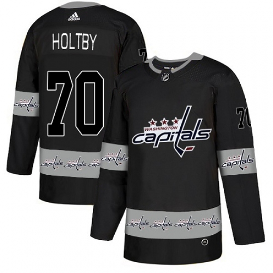 Men's Adidas Washington Capitals #70 Braden Holtby Authentic Black Team Logo Fashion NHL Jersey