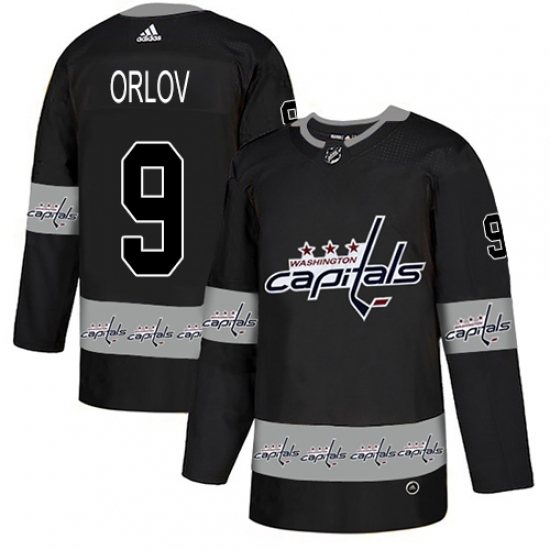 >Men's Adidas Washington Capitals #9 Dmitry Orlov Authentic Black Team Logo Fashion NHL Jersey