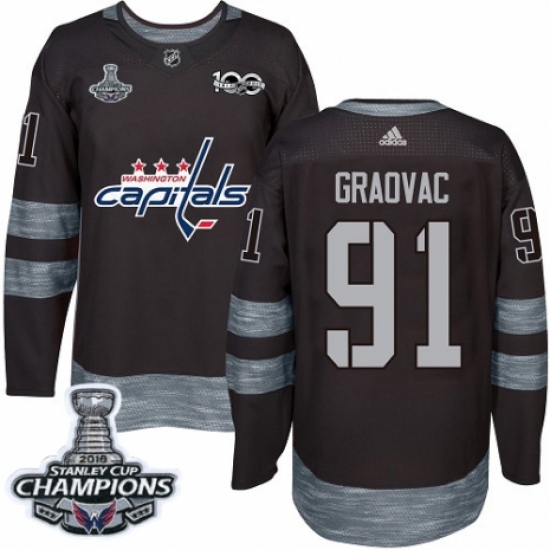 Men's Adidas Washington Capitals #91 Tyler Graovac Authentic Black 1917-2017 100th Anniversary 2018 Stanley Cup Final Champions NHL Jersey