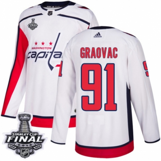 Men's Adidas Washington Capitals #91 Tyler Graovac Authentic White Away 2018 Stanley Cup Final NHL Jersey