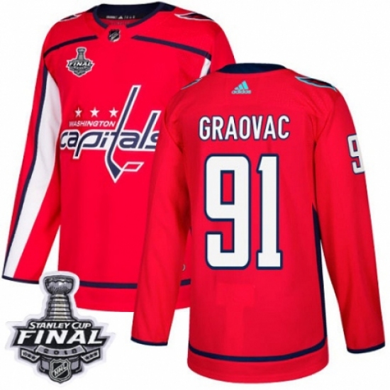 Men's Adidas Washington Capitals #91 Tyler Graovac Premier Red Home 2018 Stanley Cup Final NHL Jersey