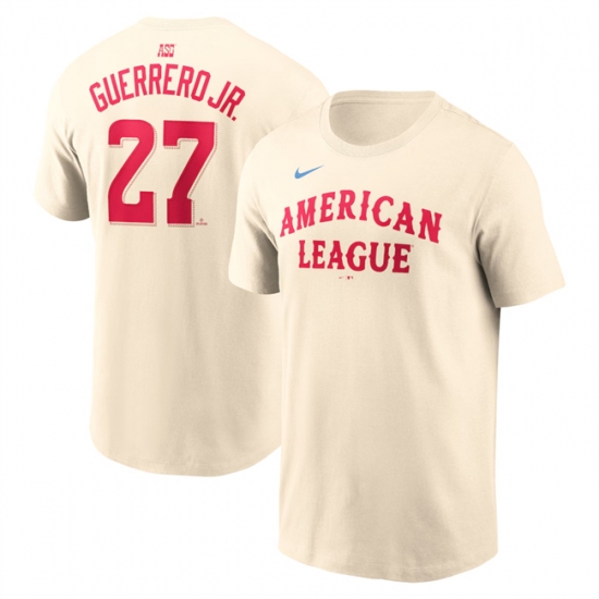 >Men's American League #27 Vladimir Guerrero Jr. Cream 2024 All-Star Name & Number T-Shirt
