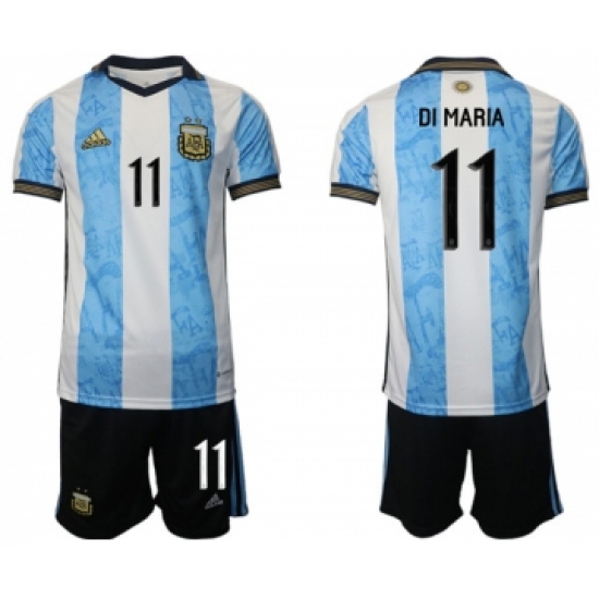Men's Argentina #11 Di maria White Blue Home Soccer Jersey Suit