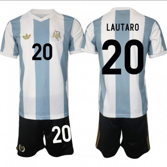 >Men's Argentina #20 Lautaro White Blue 2024-25 50th Anniversary Home Soccer Jersey Suit