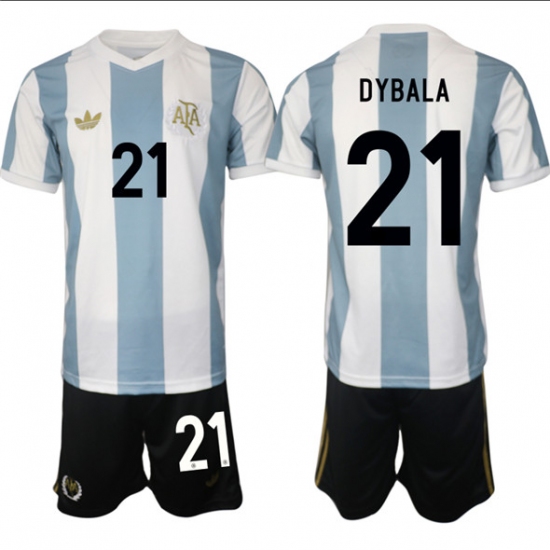 Men's Argentina #21 Dybala White Blue 2024-25 50th Anniversary Home Soccer Jersey Suit