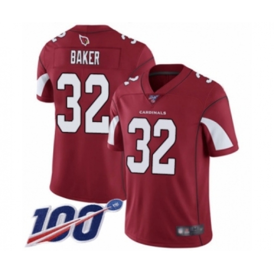 Men's Arizona Cardinals #32 Budda Baker Red Team Color Vapor Untouchable Limited Player 100th Season Football Jersey