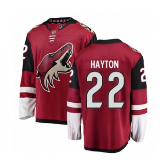 >Men's Arizona Coyotes #22 Barrett Hayton Authentic Burgundy Red Home Fanatics Branded Breakaway NHL Jersey