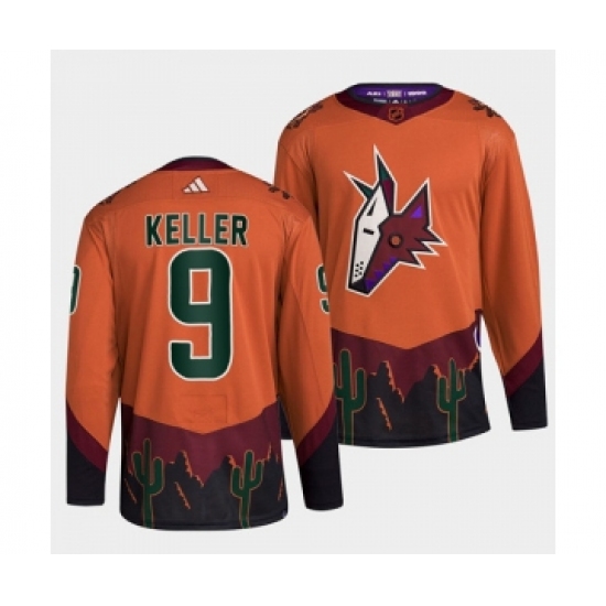 Men's Arizona Coyotes #9 Clayton Keller Orange 2022-23 Reverse Retro Stitched Jersey