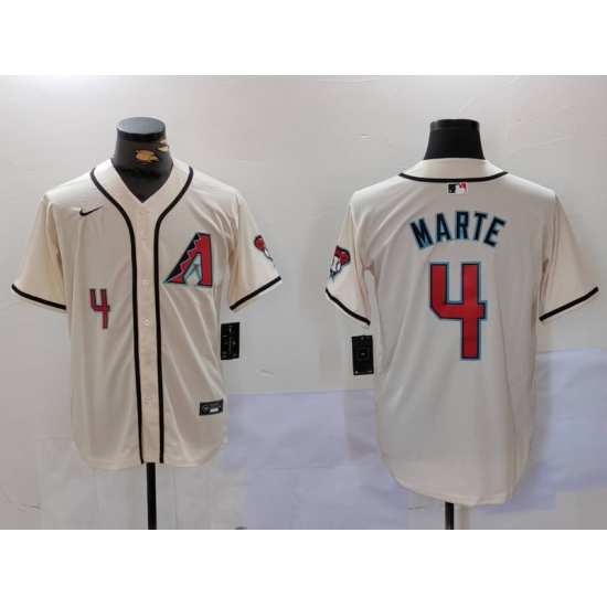 >Men's Arizona Diamondback #4 Ketel Marte Number Cream Cool Base Limited Stitched Jersey