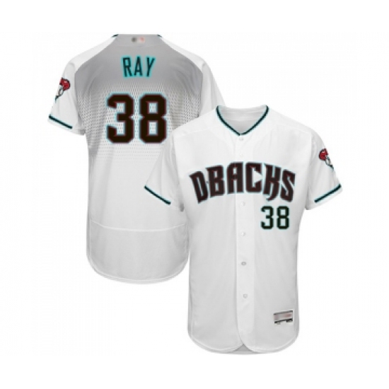 >Men's Arizona Diamondbacks #38 Robbie Ray White Teal Alternate Authentic Collection Flex Base Baseball Jersey