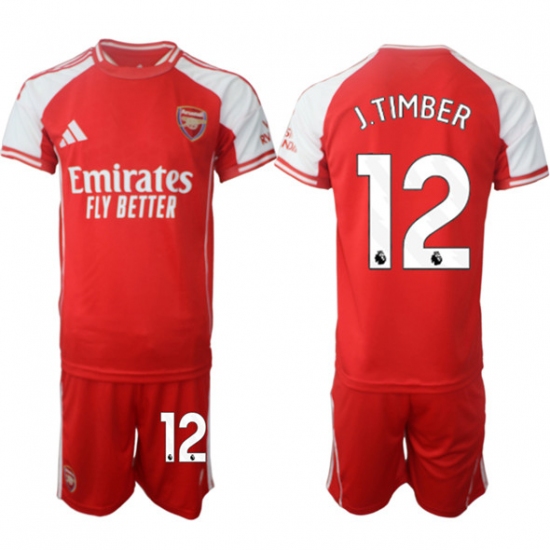 >Men's Arsenal F.C #12 Jurrien Timber Red 2025 Home Soccer Jersey Suit
