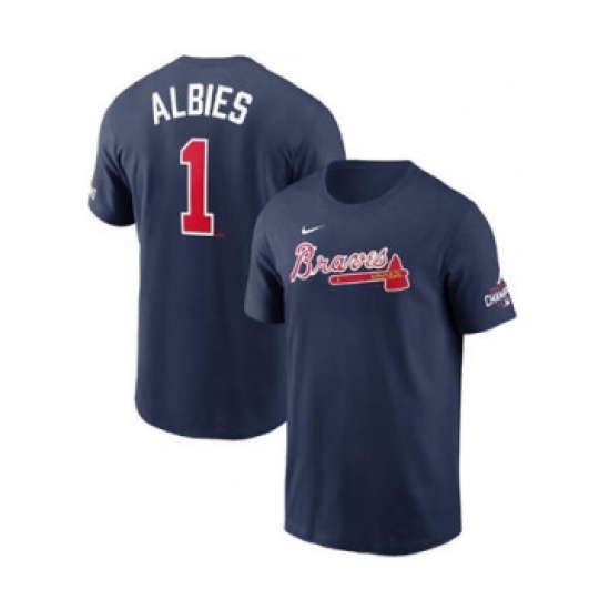 Men's Atlanta Braves #1 Ozzie Albies 2021 Navy World Series Champions Player Name & Number T-Shirt