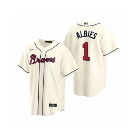 Men's Atlanta Braves #1 Ozzie Albies Nike Cream 2020 Replica Alternate Jersey