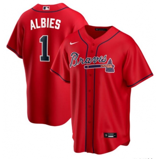 Men's Atlanta Braves #1 Ozzie Albies Nike Red 2020 Replica Alternate Jersey