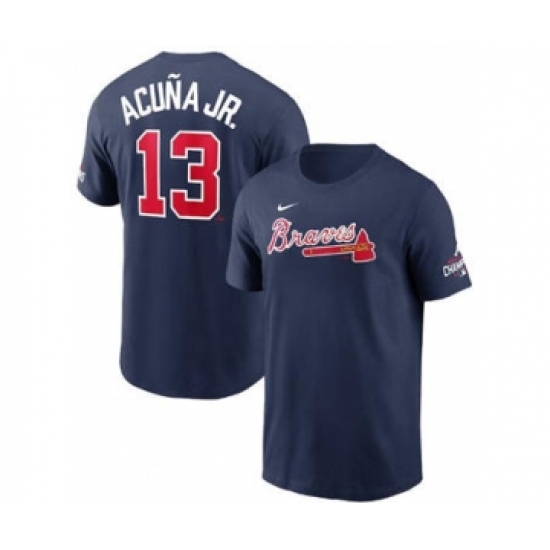 Men's Atlanta Braves #13 Ronald Acuna Jr. 2021 Navy World Series Champions Player Name & Number T-Shirt