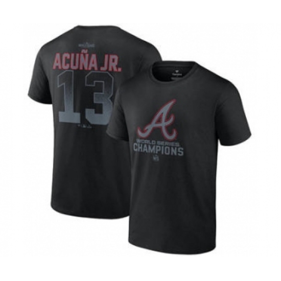 Men's Atlanta Braves #13 Ronald Acuna Jr. Black 2021 World Series Champions Name & Number T-Shirt