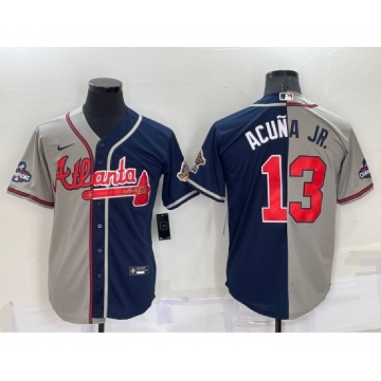 Men's Atlanta Braves #13 Ronald Acuna Jr Grey Navy Blue Two Tone Stitched Nike Jersey