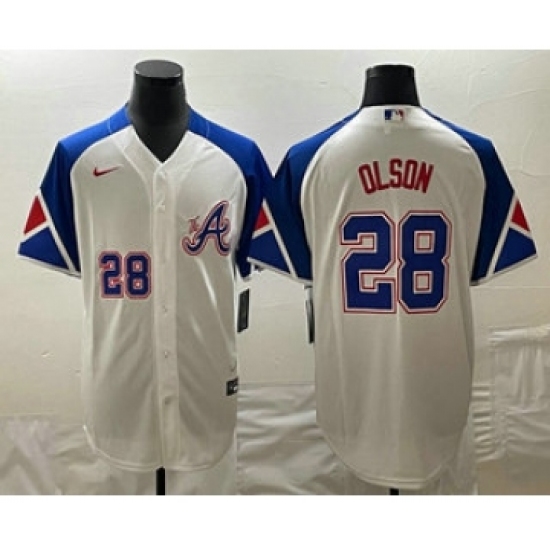 Mens Atlanta Braves #28 Matt Olson Number White 2023 City Connect Cool Base Stitched Jersey