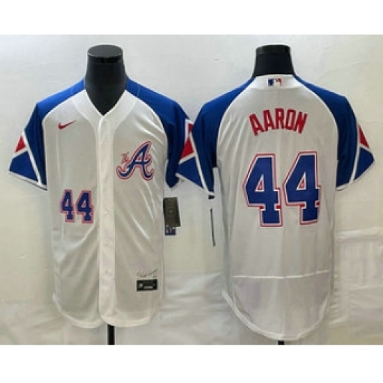 Men's Atlanta Braves #44 Hank Aaron White 2023 City Connect Flex Base Stitched Baseball Jersey
