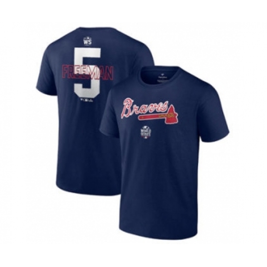 Men's Atlanta Braves #5 Freddie Freeman 2021 Navy World Series Bound Closer Name & Number Baseball T-Shirt