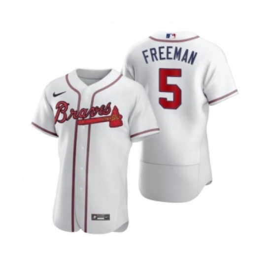 >Men's Atlanta Braves #5 Freddie Freeman Nike White 2020 Authentic Jersey