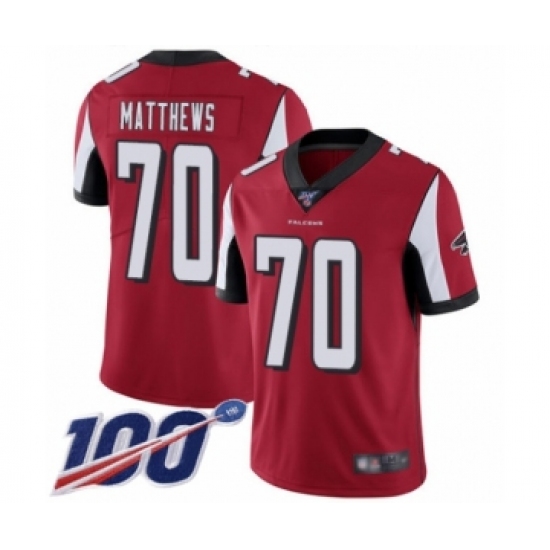 Men's Atlanta Falcons #70 Jake Matthews Red Team Color Vapor Untouchable Limited Player 100th Season Football Jersey