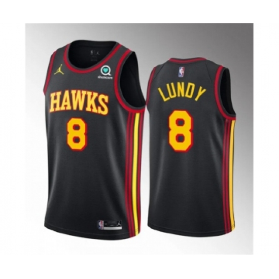 >Men's Atlanta Hawks #8 Seth Lundy Black 2023 Draft Statement Edition Stitched Jersey