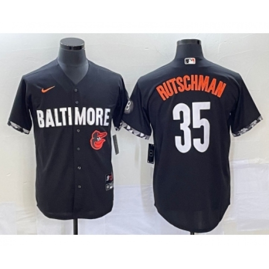 Men's Baltimore Orioles #35 Adley Rutschman Number Black 2023 City Connect Cool Base Stitched Jersey 1