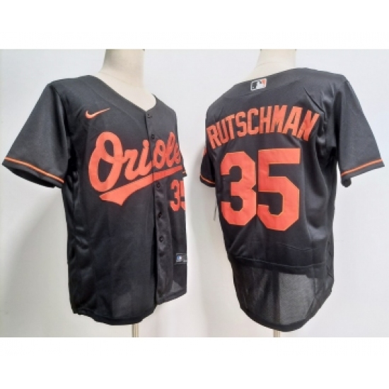 >Men's Baltimore Orioles #35 Adley Rutschman Black Stitched Flex Base Nike Jersey