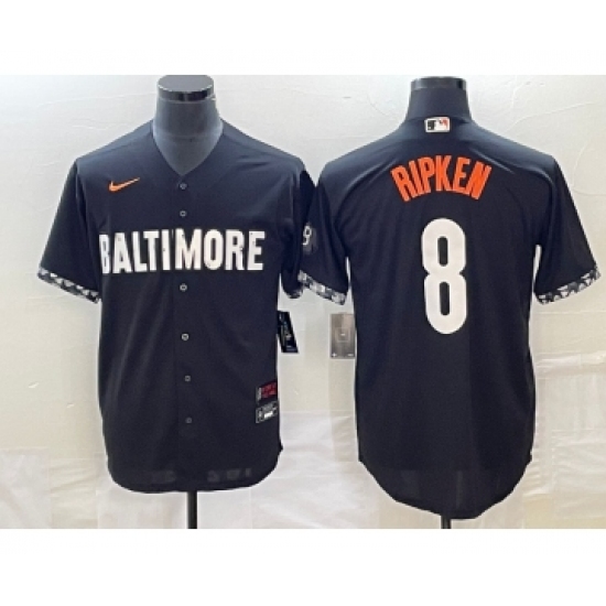 Men's Baltimore Orioles #8 Cal Ripken Jr Black 2023 City Connect Cool Base Stitched Jersey