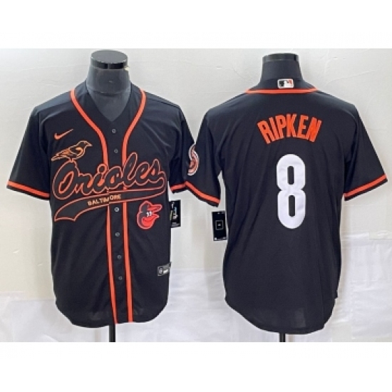 Men's Baltimore Orioles #8 Cal Ripken Jr Black With Patch Cool Base Stitched Baseball Jersey