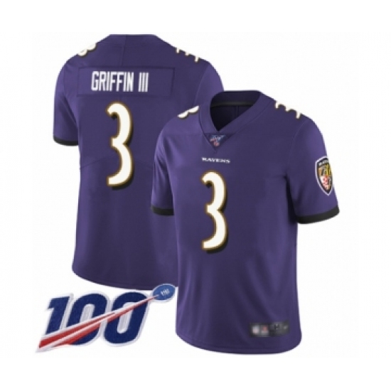 Men's Baltimore Ravens #3 Robert Griffin III Purple Team Color Vapor Untouchable Limited Player 100th Season Football Jersey