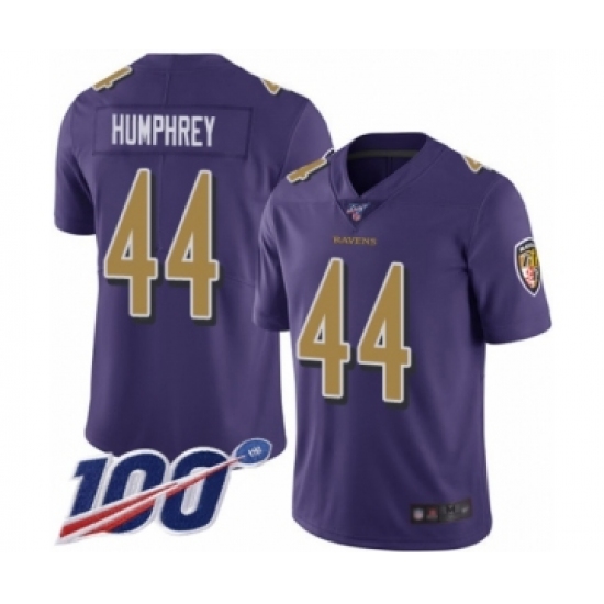Men's Baltimore Ravens #44 Marlon Humphrey Limited Purple Rush Vapor Untouchable 100th Season Football Jersey